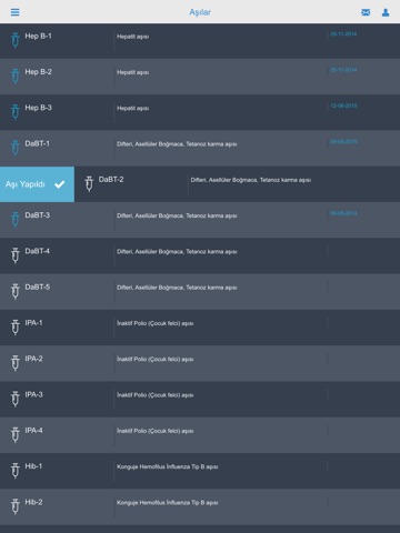 Aşılar uygulaması ile tüm aşıları listeyebilir, yapılan aşılarınızın tarihini kaydedebilir ve geçmiş aşı takviminizi yapılandırabilirsiniz. Uygulamaya birden fazla alt kullanıcı hesabı oluşturarak aynı anda hem kendiniz hem çocuklarınız hem sevdiğiniz kişilerin kayıtlarını kolayca kaydedebilirsiniz ve görüntüleyebilirsiniz. Aşılar uygulaması ile i-healthfile.com üyeliğini ücretsiz olarak başlatabilir ve bilgilerinizi iki yönlü olarak kayıt altına alabilir, tüm aşı listenizi sadece bir tuşa basarak istediğiniz kişiye eposta ile gönderebilirsiniz.