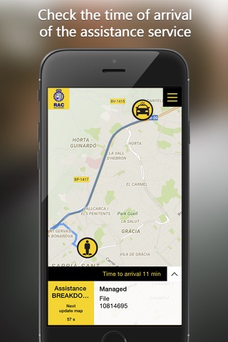 - Follow the evolution of the service on your smartphone, including the position of the unit that is coming to help you and how long they are going to take to arrive.