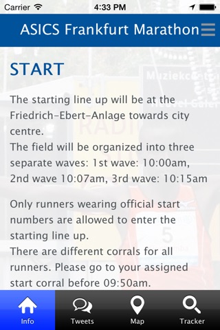 BMW Frankfurt Marathon app allows participants, spectators, friends and family to access the latest news about the event.