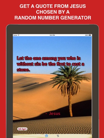 Ask Jesus allows you to ask for advice from the Universe. Simply think of your "problem", shake your device, and the app will choose a quote from Jesus for you to reflect on. The teachings are chosen using a random number generator ensuring a totally unique experience every time you use the app.