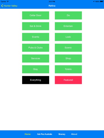 • Exclusive "Switch Back" feature allowing all users to switch to a full Australia wide version of Ask Roz. This way they never need to stop using their Ask Roz Hunter Valley app.