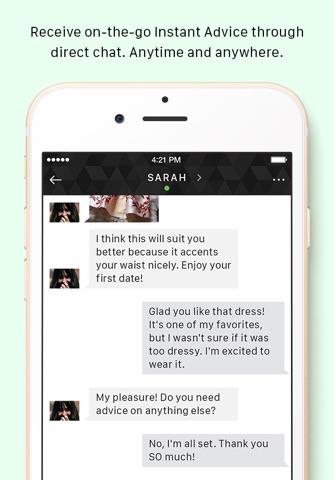 Get style advice from industry experts & tastemakers in fashion, hair, and beauty through direct chat – anytime and anywhere – to discover your personal style. Get unique tips that flatter your face, hair and body type; and ways to achieve that perfect occasion-appropriate look – from a first-date outfit to a total style revamp. It’s like having a super savvy “style friend” in your pocket who knows your preferences and gives fast, unbiased advice in a fun and convenient setting.