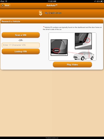 After downloading and opening the AskAuto app, you’ll have the chance to choose your credit union to personalize the app. If your credit union is not listed, they are not currently offering AskAuto.