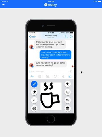 Send your friends, enemies, and frenemies incredible drawings with Askey! Whatever you draw on the keyboard will be instantly transformed into text, ready to share through your favorite messaging applications. Blow their minds as you amaze with your superior texting abilities.