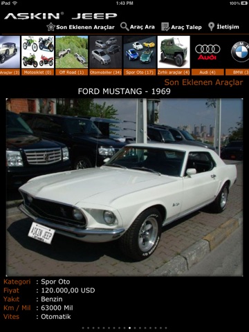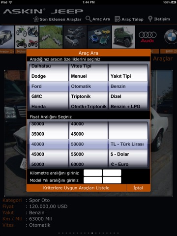 Aşkın Motorsun portföyündeki bütün araçları bu uygulama ile görebilecek ve araç detaylarını inceleyebileceksiniz.