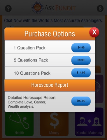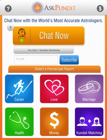The AskPundit App is the first chat based horoscope service to help people avail astrology services while on the go. This is the easiest and most convenient way to connect with astrologers to get accurate readings or specific reports on career, love, marriage, health, money, kundali matching. The various question packs, reports or even a complete horoscope report are just some of the benefits you can subscribe for.