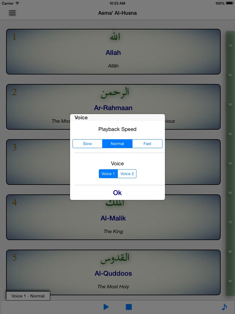 With this app youll learn the 99 Names of Allah (Asma Allahul Husna - اسماء الله الحسنى).