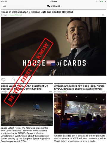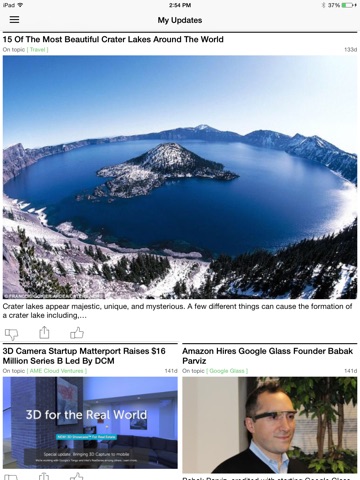 - Topic Page so you get a page all on one topic. Simply tap on the topic to get to the page.