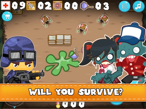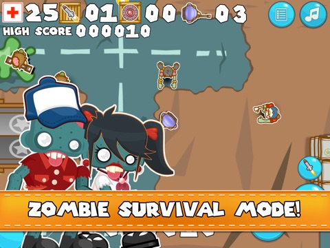 - zombie survival mode where Blue Soldier stays alive as long as possible to score points!