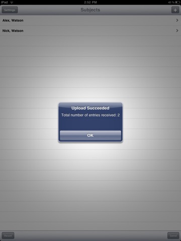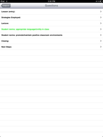 When you see the Subjects page, you can start observing! When you are ready to observe, click on the subject to observe, or you can add a subject/person to observe by clicking the + button, then enter the first and last name and click ‘Add’. New subjects are automatically saved to the your account. After you select a subject to observe, you then will select and answer questions on the observation form, and return to the Subject page to Send your observations to the system. If you have your email address entered in the ‘Settings’ page, the system will prepare and email you a report. Additionally, with an account on our FacultyTools server system, you can log in to view reports on-line, print consolidated reports, and export data for further analysis.