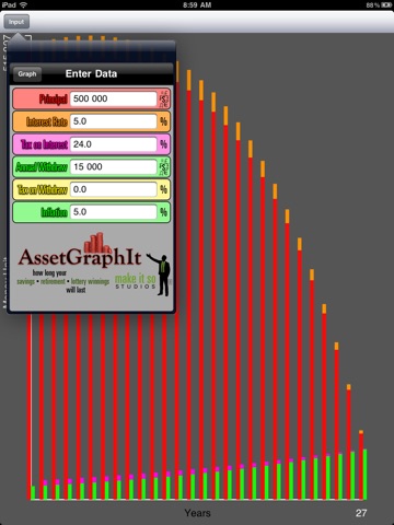 As inflation grows you will need to withdraw more from savings or retirement accounts. This app will calculate how long any savings, pension, or any lump sum will last after annual withdrawals.