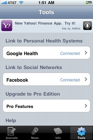 The Asthma Journal application connects your iPhone to your personal account in Google Health (go to the "Tools" tab in the app). After the connection is established, the app automatically sends newly created journal entries to your Google Health account. You can then chart the data, and share it with family / friends / doctors via Google Healths built-in visualization and sharing features.