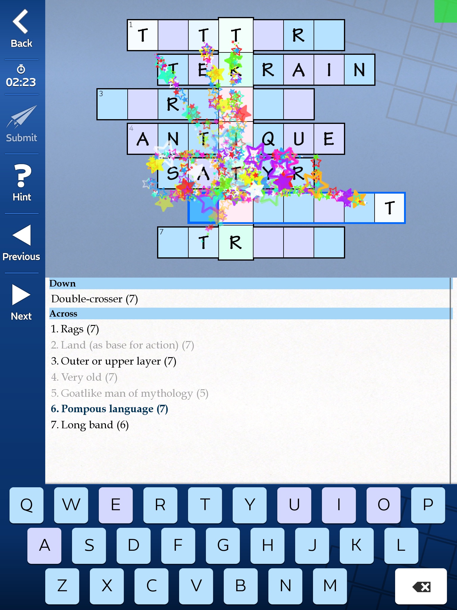 The unique twist are some novel features to boost your progress - highlighting in puzzle shows you where vowels and consonants appear, and each time you get one of the horizontal words, the target letter is revealed throughout the puzzle! Still need a bit of a hint? (Everyone does, from time to time!) - ask for a hint for a small time cost and our bookend-hints give you the first and last letters of the word which weve found are a huge help!