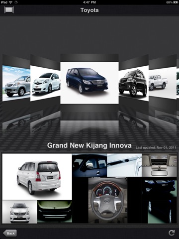 Designed with attractive user interface showing our latest product line up. You may find all car information that you need e.g.: models, color, variants, specifications, and accessories.