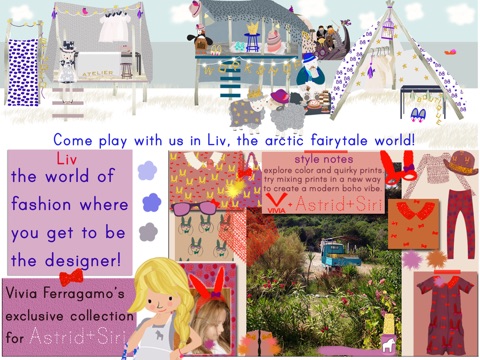 Be a fashion designer and create your own collection in the bohemian world of Liv with Astrid and Siri. Choose from fabrics, patterns and accessories by Vivia Ferragamo and Astrid+Siri. This is NOT DRESS-UP but the world of fashion design! You can mix fabrics and patterns to make endless combinations. Create your personal style by patternmaking, sewing and styling! Then read “A Walk in Vivia Ferragamo’s Shoes” while your designs sell in the Boutique!