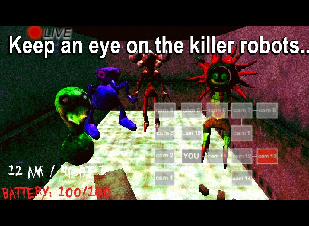 Welcome to your new summer job as a security guard in the Asylum, an abandoned hospital for kids. While there you notice something strange about the old robots used for surgery. They are decorated with old clown makeup for the sick children, and seem to come alive at night. Your boss warns you that if the robots find you during your shift, they may think you are a patient that needs immediate dissection.