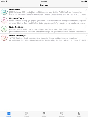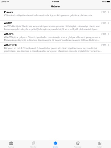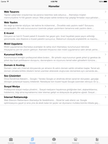 Uygulamamızın içerisinde kurumsal bilgilerimiz yanında, web tasarımı, web yazılımı, mobil uygulamalar konusunda ayrıntılı bilgilere ve referanslarımıza ulaşabilirsiniz.