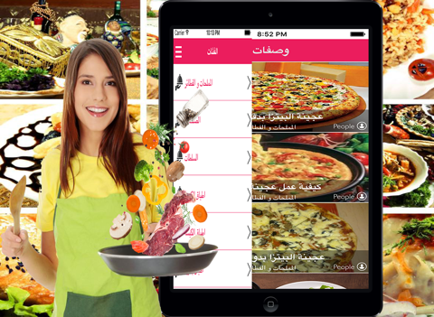 توجد وصفات عربية وصفات تركية وصفات شرقية وصفات غربية وصفات خليجية وصفات رمضان ايضا و يحتوي على وصفات المناسبات مثل وصفات رمضانية و وصفات العيد و وصفات عيد الاضحى وصفات أعياد الميلاد أيضا والقائمة كبيرة مثل ,المأكولات البحرية, العصائر,السلطات,الصلصات,المربيات ,الشوربات,الحلويات,البسكويت و المقبلات, المعجنات واللحومات, الدجاج ,أطباق رئيسية ,أطباق جانبية,بيزا ,سلطة ويحتوي على أيضا على فطور ,حساء ,مشروبات