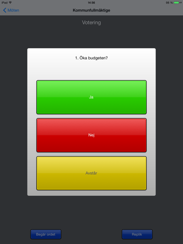 Sekreteraren kan lägga upp en fråga för omröstning. När omröstningen öppnas, kan deltagarna rösta i appen.
