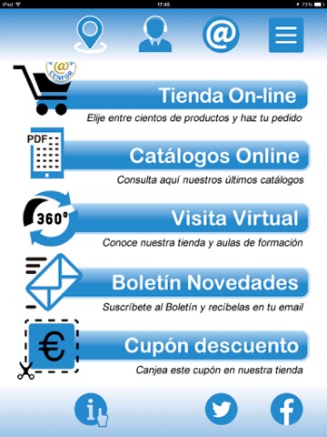 Descárgate esta App y recibirás notificaciones de nuestras ofertas y cursos, también podrás ver nuestras ofertas y catálogos online, conocer nuestros packs en telefonía móvil, beneficiarte de nuestros cupones descuento o conocer nuestra tienda y aulas mediante una visita virtual.