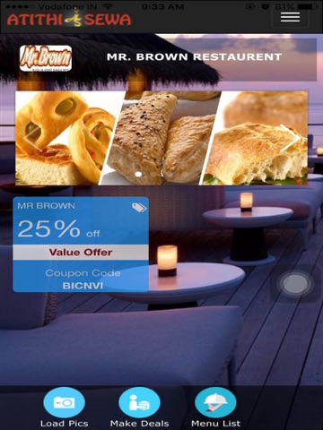 Fourth screen is for home screen you can see your logo, banner and deals.