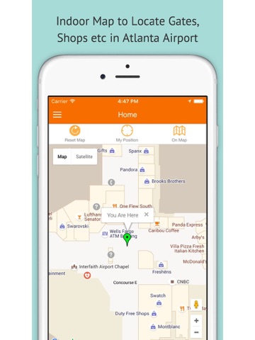 - Send your location and route to reach you using Atlanta Airport Map etc