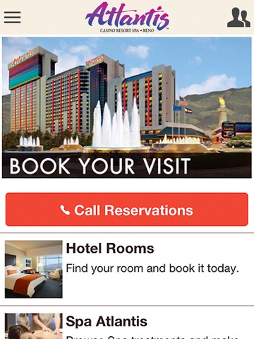 The official Atlantis Reno app is designed to assist our guests with unique and interactive content. The app is the perfect tool to keep you informed of upcoming events, book rooms, make dining reservations, make spa reservations, view special offers and easily navigate through our casino floor, convention spaces and spa. For our Club Paradise members, you can view your tier level, comp point balance, club offers and more...
