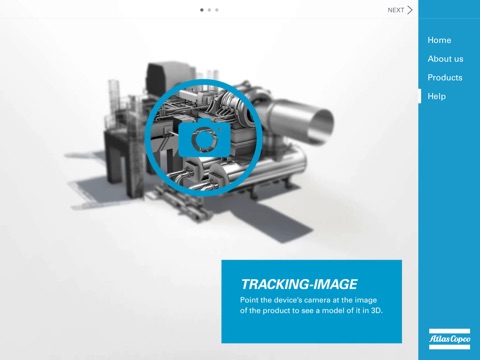 Atlas Copco Augmented Reality is an application designed for use with Atlas Copco Gas and Process catalogs and print material. Utilizing the iPad camera function, the app makes it possible to explore 3-D models of the products. Users can zoom in on product details, swipe for 360 degrees views, and read the additional information provided about product specifications. Because the application works offline, users can learn about the latest in Atlas Copco Gas and Process products no matter where they are.