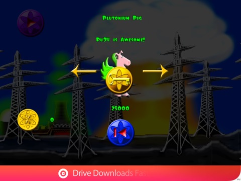 Visit the Atomic Bank to Purchase instant Pig Power. Get instant gratification... Buy your Flouncy Bouncy Glowing Bunny while youre there too! To visit the Game Centre, Hit the "World" button to see how your Best Score ranks against Gamers around the Globe!
