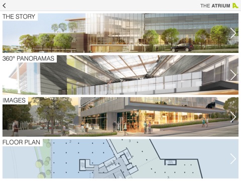 Presented by Washington Holdings, The Atrium App is a window into this future Seattle building. The app contains plans, images and site information as well as two immersive 360 panoramas allowing you to look around inside the lobby and see the view from the roof deck.