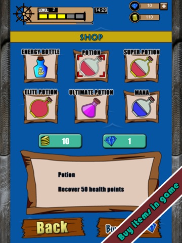 - Purchase different items in shop to help you pass each level