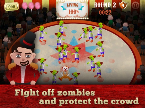 Play one of 4 circus characters trying to stop the undead horde from eating the circus crowd. Using your chainsaw, throw it and watch it bounce off zombies like a pinball. Just dont touch the zombies!