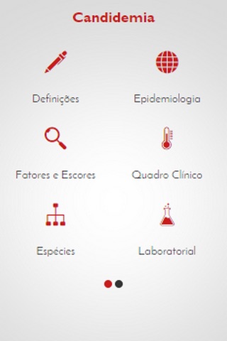 O aplicativo apresenta dados sobre os principais fatores de risco e preditivos para o diagnóstico de candidemia, baseando se em escores diagnósticos. A abordagem de diagnóstico clínico e laboratorial é toda baseada em literatura científica apresentando os prós e contras dos exames diagnósticos de cultivo, identificação e fungigrama.