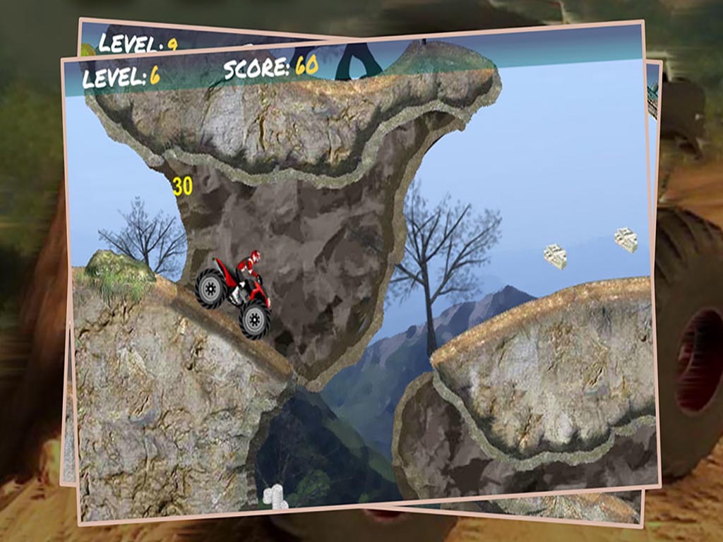Kick start the engine and use your skills to drive your ATV over rough and treacherous terrain.