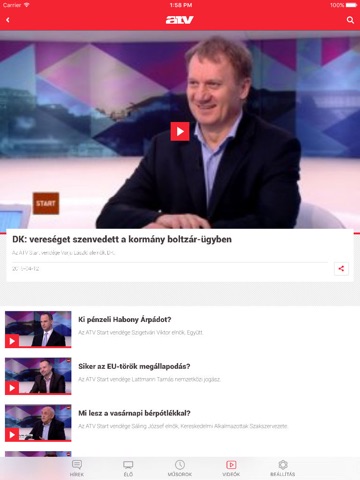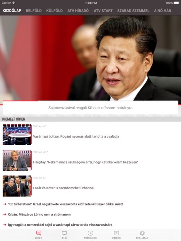 Az atv.hu app a HÍREK főmenüben a KEZDŐLAP füllel indul, ahol a legfontosabb híreket képpel és címmel láthatják az applikáció használói.