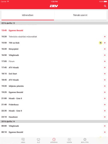 A MŰSOROK tab alatt megtekintheti műsorainkat: