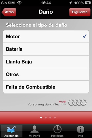 Audi Asistencia permite solicitar auxilio vial para su vehículo Audi una vez instalada la aplicación en su dispositivo y personalizada su información en la base de datos.