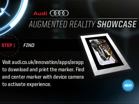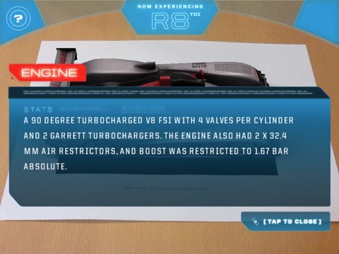 Race winning Audi Le Mans cars using the camera on your phone and a printed target, available to download or print from http://audi.co.uk/innovation/apps/arapp/