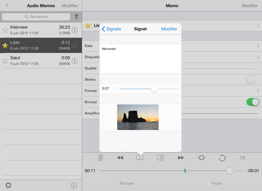 Tres bonne application, je l utilise souvent lors de reunion pour etablir un compte rendu final, le bon cote c est de pouvoir etre a 100% dans la discution sans devoir prendre de note. Tres bonne reception tres bon entegistrement je donne 5 etoile bien meriter.