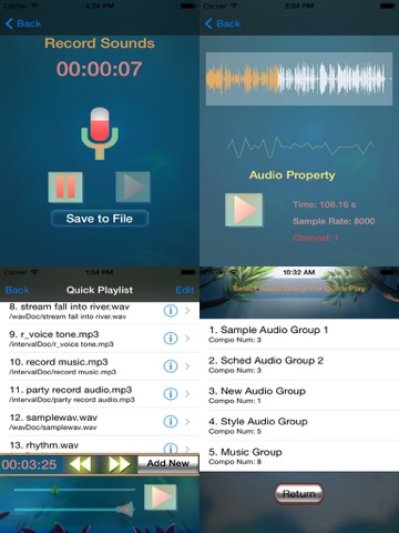- Copy audio files to Device "wavDoc" & "intervalDoc" folder through iTunes for iPhone, iPad, iPod Touch playing via USB.