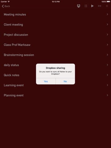 iCloud sync is one of the key features of this App. All you need to do is log-in to iCloud in device’s settings. If you have several iOS devices provisioned with the same account, you will be able to see all recordings on all of those devices as well as in iCloud drive. For example, it is very easy to start recording on iPhone and continue on iPad. Dropbox sharing is another useful feature of this app which makes sharing as easy as possible.