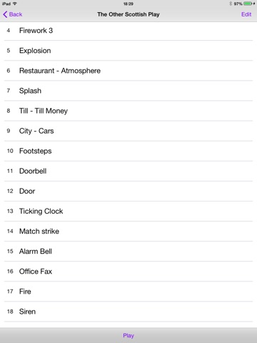 Set up a new title for each of your events, or set up a separate one for each act or part. Load sounds from your iTunes library, either individually or from a playlist or genre. Tap the Play button and the sound plays, after which the next one is automatically lined up.