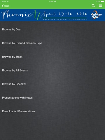 The AudiologyNOW! 2016 conference mobile application allows you to view the schedule, presentations, posters, exhibitors and speaker details from the conference. Users can take notes adjacent available presentation slides and draw directly on slides inside the app. Note-taking is also available in the posters and exhibitors modules.