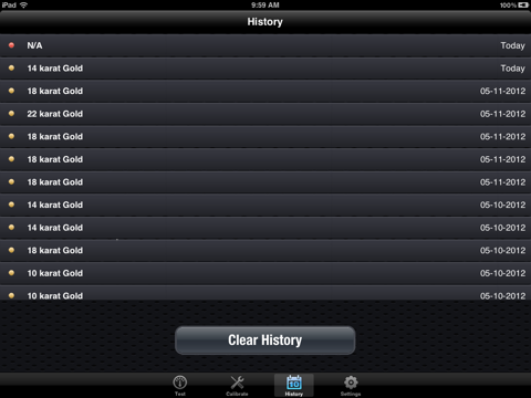app. The app is straight-forward. Simply touch the Pen Probe (sold seperately) to the gold or platinum and the AuRACLE Gold Tester displays the karat value of your gold. The AuRACLE Gold Tester then convenintely keeps a record of previous testings on your iOS device.