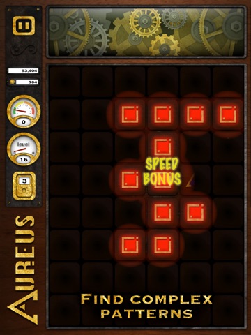 Players must rely on their memory to match hidden elements. Speed is likewise essential to master the Aureus which has a strong tendency to overheat. Skilled players have the option of using gold coins earned over time to upgrade the machine. Upgrades can reduce pressure, slow falling elements, or minimize the impact of failed matches amongst other benefits. Once fully upgraded, Aureus provides its fastest game mode with frantic gameplay.