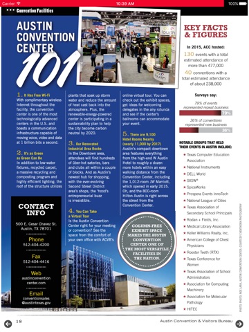 The Austin Meeting Planner and Destination Guide is an invaluable resource for meeting and event planners. The comprehensive guide features Austin as a premier meeting, convention and leisure destination, providing detailed information on Austin’s meeting facilities, accommodations, dining and nightlife, attractions and convention services.