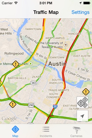 Austin Traffic is useful for route planning. If you are stuck in an unexpected traffic jam, its easy to launch and quickly see if there is an accident or traffic jam up ahead. Should you take a different road? Are you going to be late getting home? Let Austin Traffic help you determine the answers.