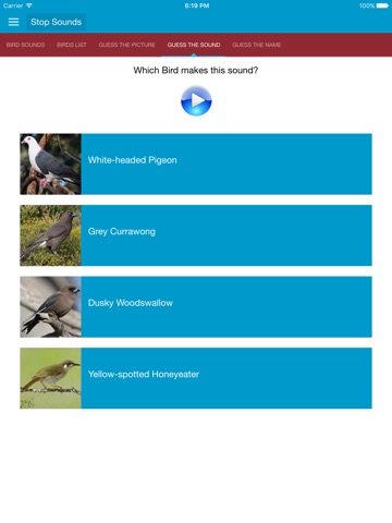 Mini games are also included helping you to learn the different birds found in this app: Guess the Picture, Guess the Sound and Guess the Name.
