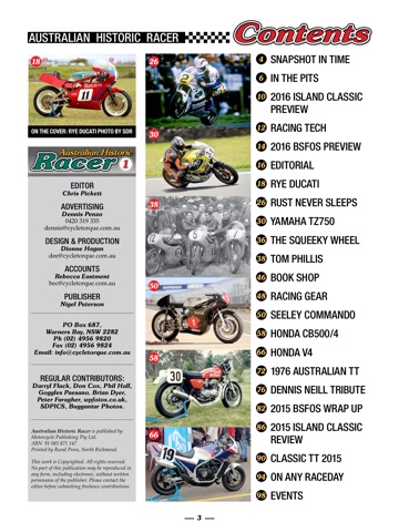 Australia’s only magazine dedicated to historic motorcycle racing - the bikes and events being raced today and stories from the past, the events and people which make racing great.