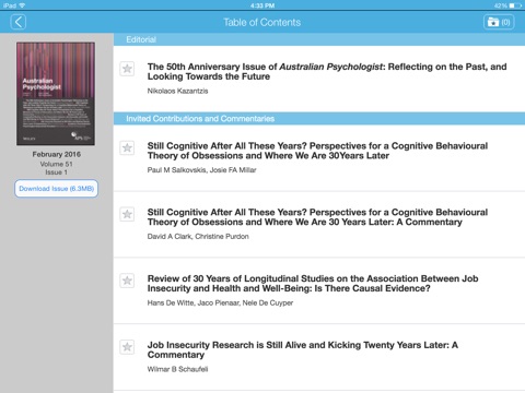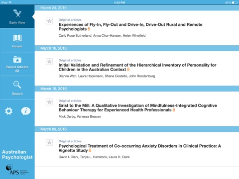CURRENT SUBSCRIBERS to Australian Psychologist can “pair” their device with their personal or institutional subscription to enjoy full access in this iPad edition.